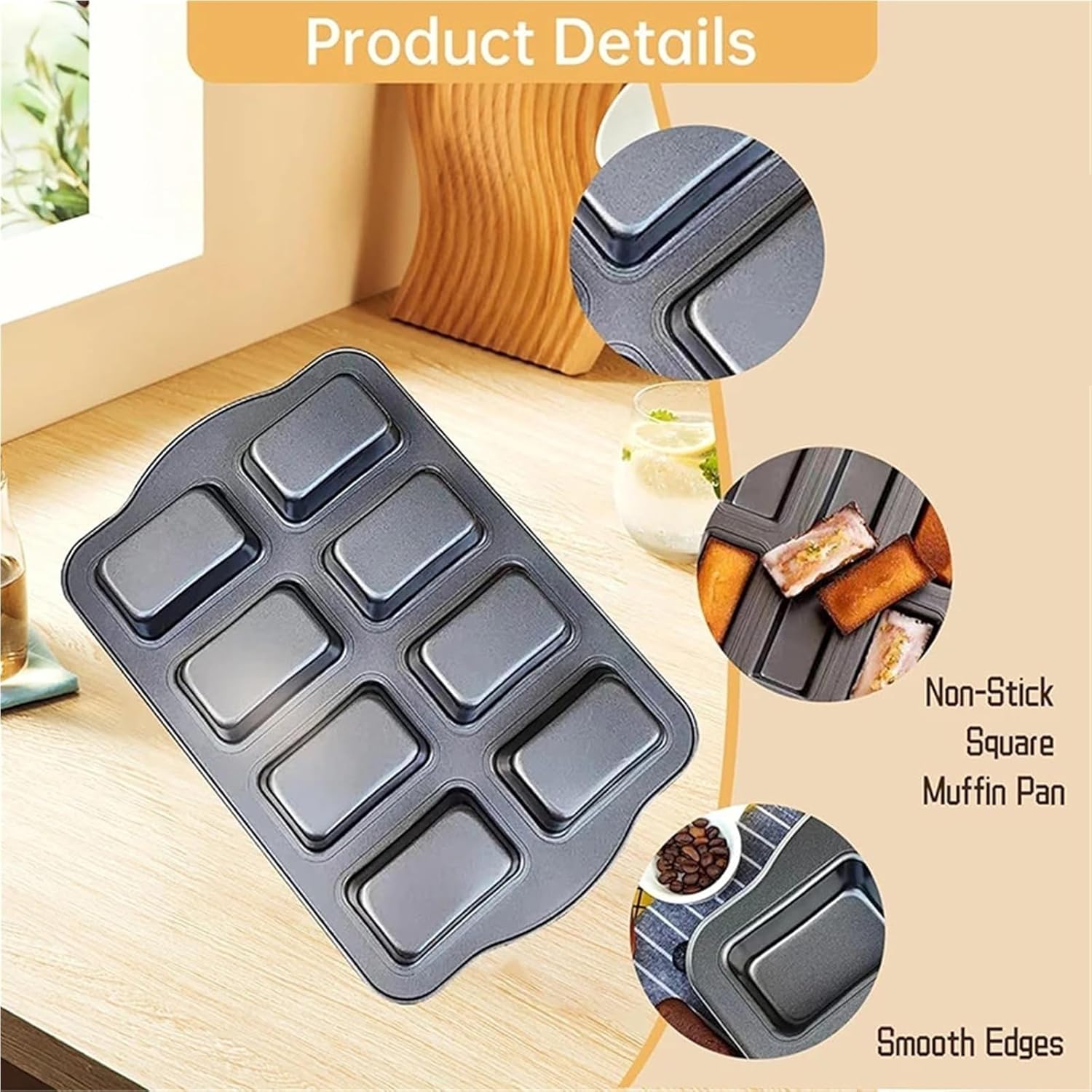 Type: 8 Grids Mini Loaf & Brownie Baking PanMaterial: Carbon SteelFeature: Nonstick coating, multi-grid square designUsage: Home kitchen daily small-batch baking